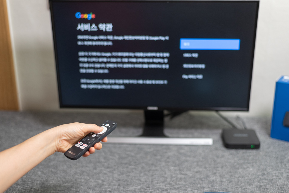 초기 세팅 과정은 한글 지원이 되기 때문에 손쉽게 완료를 할 수 있었습니다. 특히 구글 크롬캐스트 내장이기 때문에 휴대폰과 연계하고 약 3분 내외로 빠르게 설정이 가능했는데요.