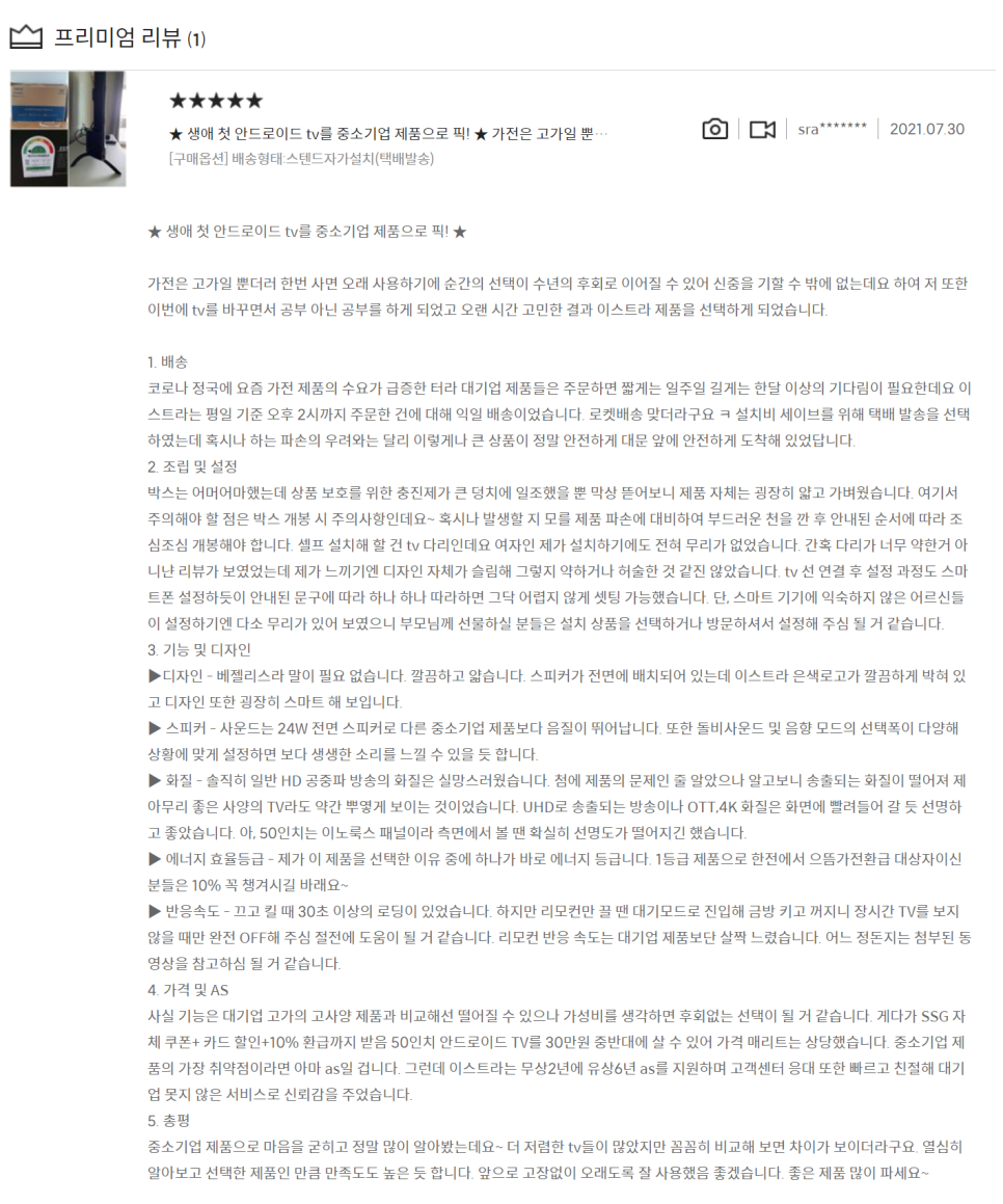| 이스트라 쿠카 55인치 안드로이드 10 TV UC551UHD 구매 후기 (블로그 베스트 리뷰어) (0) | 2022.03.21 |