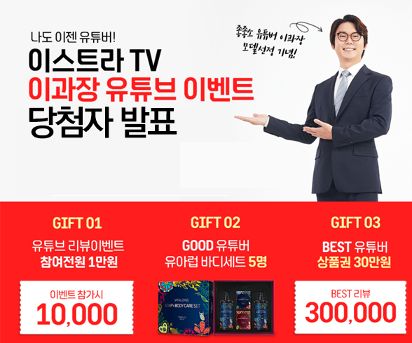 유튜브 베스트 리뷰 당첨자 (300,000원 상품권 증정)
