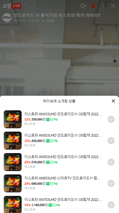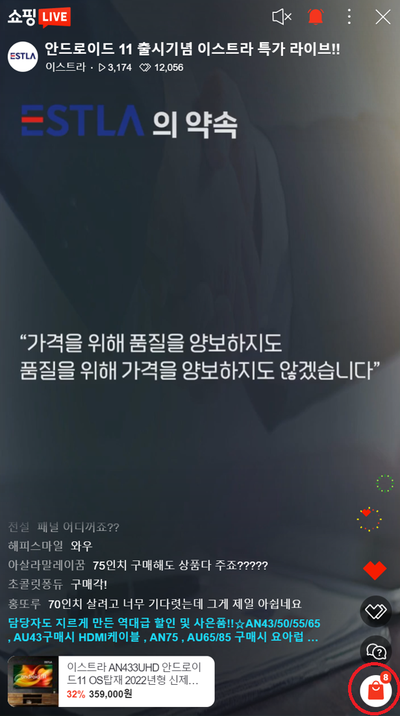 라이브 방송화면에서 우측하단의 장바구니를 클릭하시면, 라이브 이벤트에 포함된 제품들이 나옵니다.^^