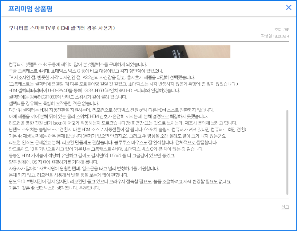 해당 리뷰어분은 조금은 특이하게, HDMI 셀렉터를 연결해서 사용해 주셨는데요