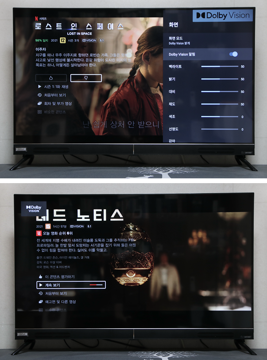 HDR10도 뛰어난 화질 개선 기술인 Dolby Vision은 넷플릭스 영상들에 대부분 적용되어 뛰어난 화질로 시청할 수 있습니다.