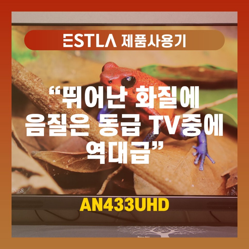 이스트라 AN433UHD는 43인치 VA 패널을 탑재한 4K UHD TV로 침실에서도 사용할 수 있는 크기의 TV입니다. 원룸에서 사용하기 딱 좋으며, PS4/PS5와 같은 콘솔 게임과 연결하여 UHD 해상도로 게임을 즐기기 위한 유저들에게 최적의 가성비 TV라고 할 수 있습니다.