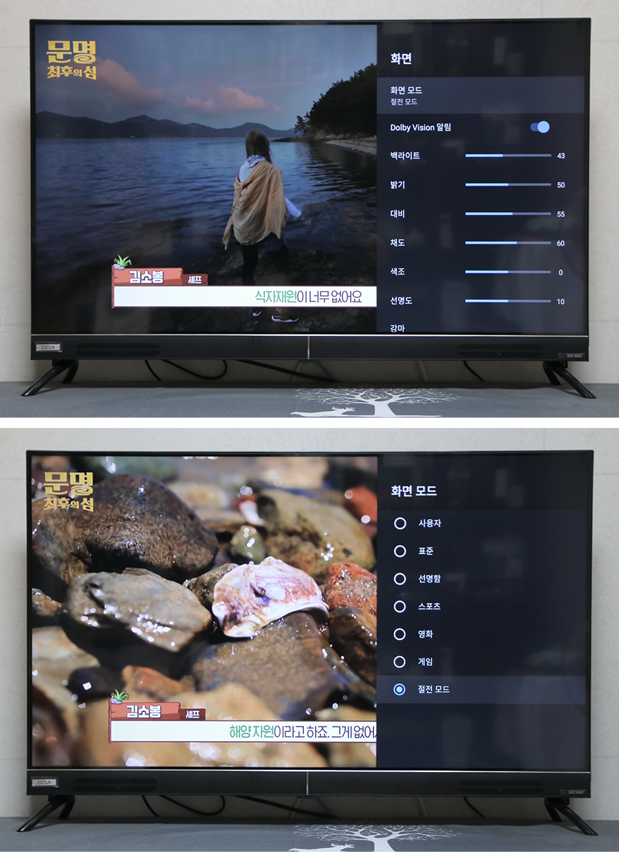 정적 명암비 5,000:1, 동적 명암비 5,000,000:1와 돌비비전 기능 지원으로 화질에 있어서 만큼의 1080i 해상도의 방송이더라도 화질이 상당히 좋습니다.