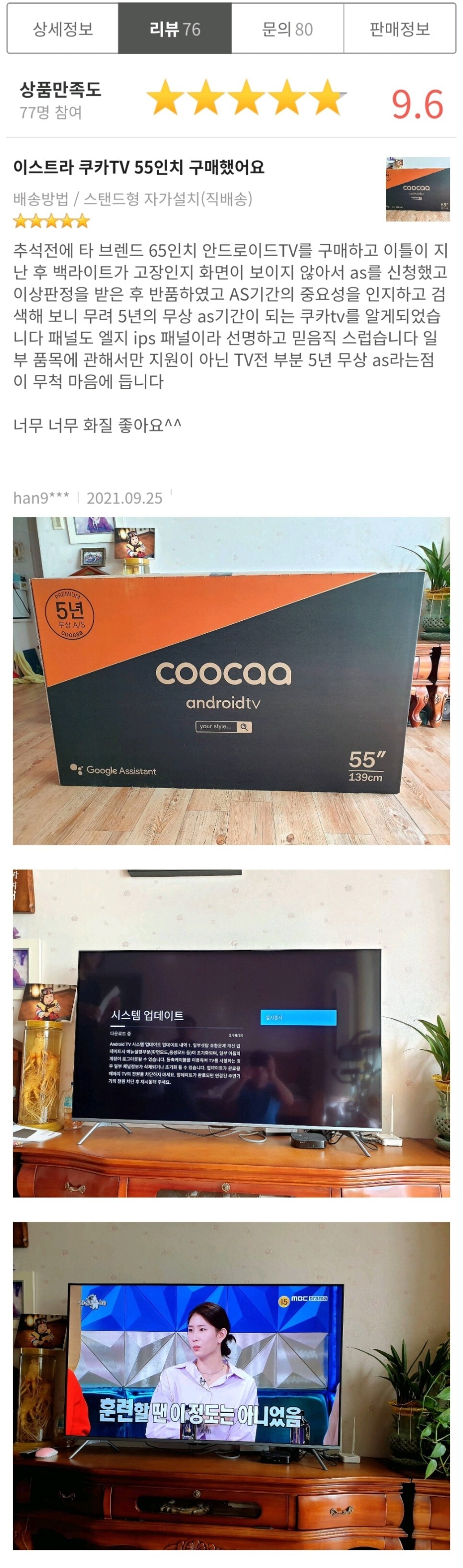 | 무상AS 5년 지원 중소기업TV 75인치 추천 안드로이드TV 이스트라 UC751UHD (0) | 2022.03.28 |