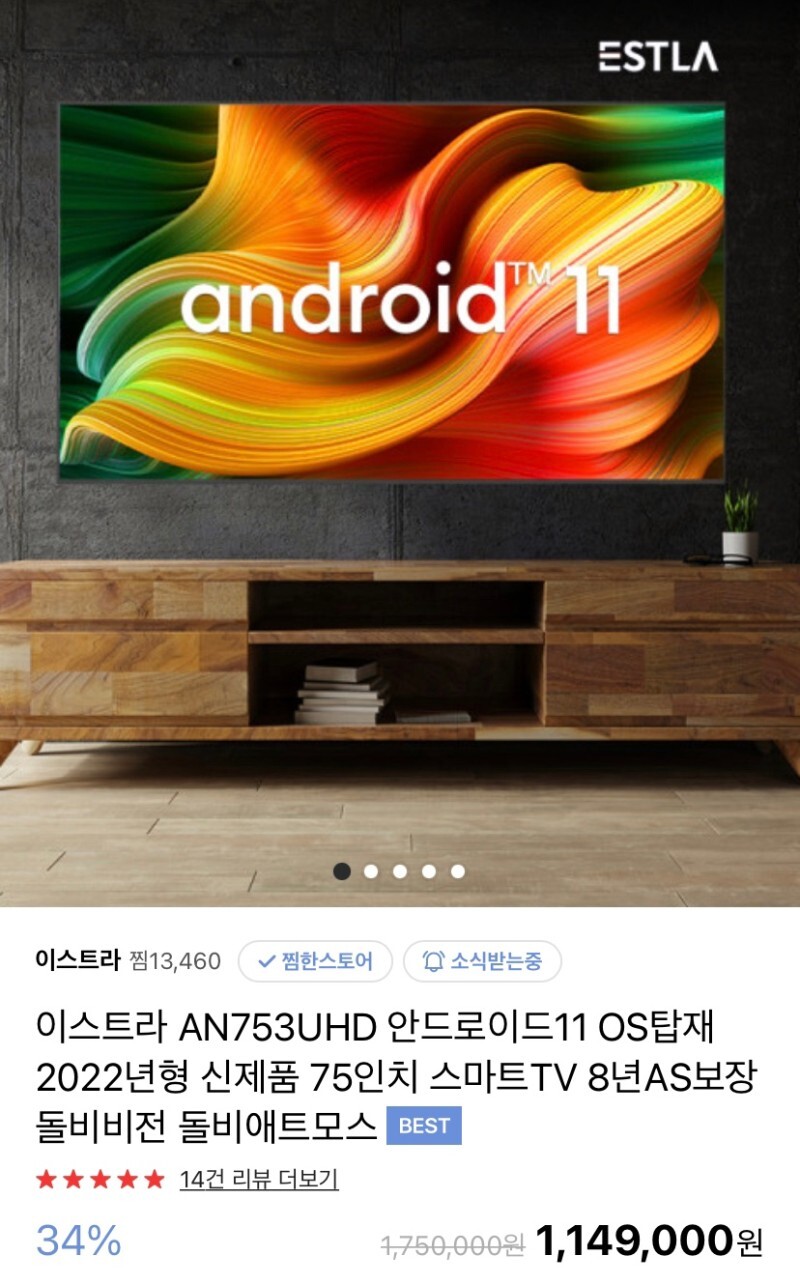 그래서 75인치 tv를 원하고 좀 더 좋은 성능을 원한다면 이스트라의 신제품도 같이 비교하면 좋을 것 같다.