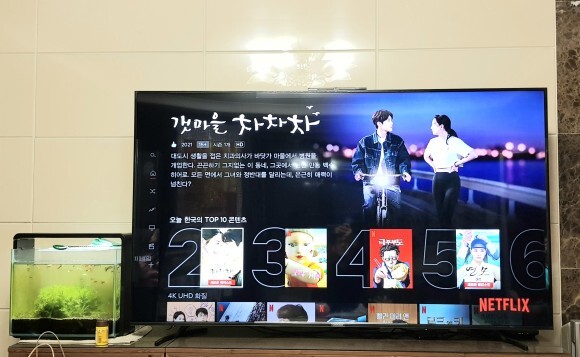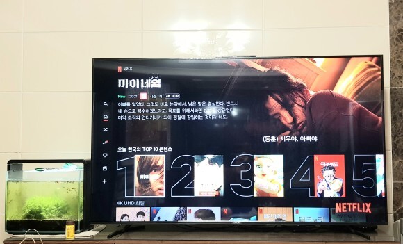 2. 4K 영상 지원으로 갯마을 차차차의 바닷가 배경 화면은 75인치의 대화면 감상으로