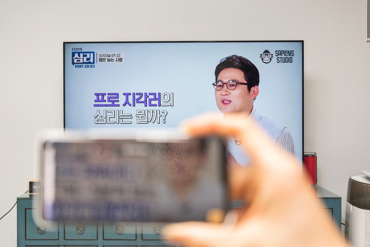 안드로이드 11이 적용된 스마트 TV인 만큼 크롬 캐스트를 통해 화면 미러링이 가능합니다. 때문에 스마트폰으로 보던 영상을 보다 큰 화면으로 깔끔하게 감상할 수 있는데, 평소 스마트폰 사용 빈도가 높은 사용자들에게 아주 유용한 기능이라고 할 수 있습니다.