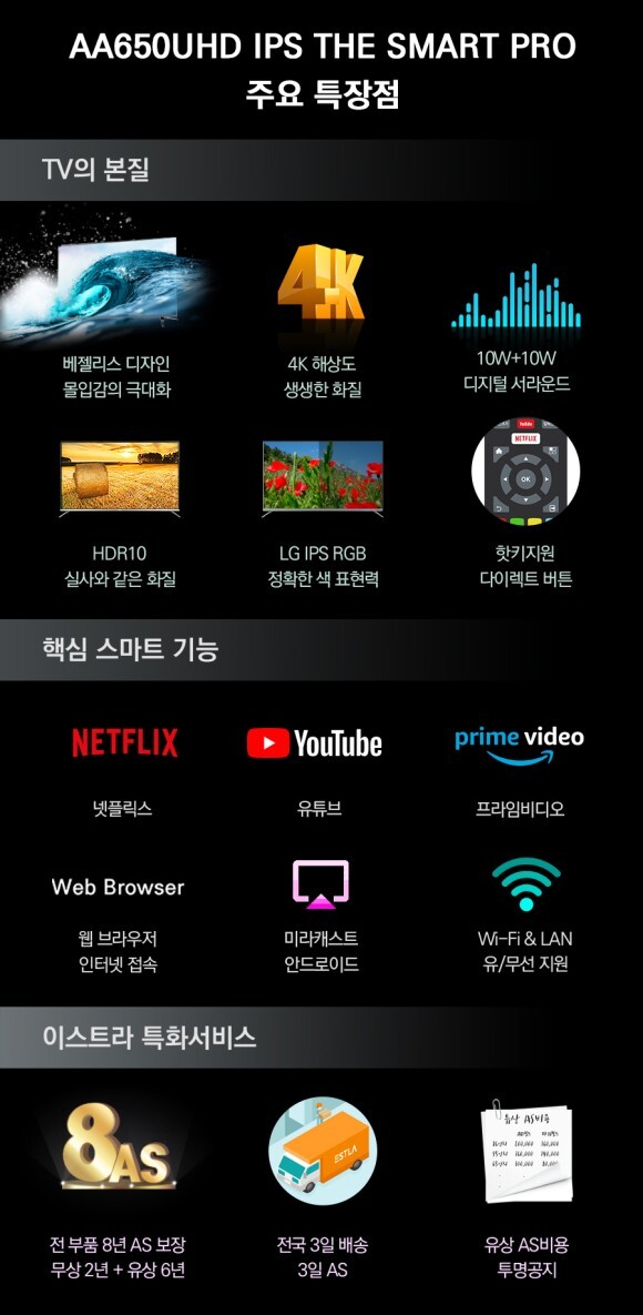 #AA650UHD #이스트라TV #스마트TV #가성비TV #65인치TV