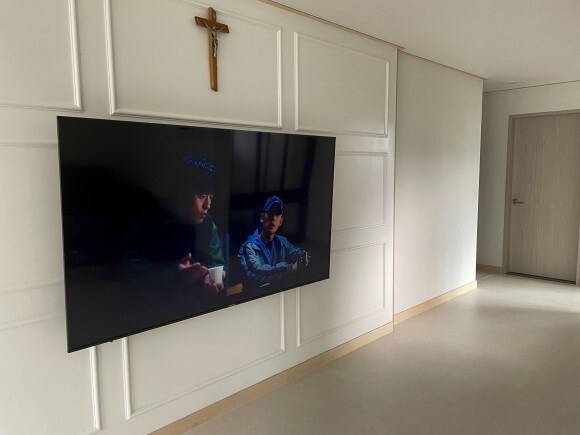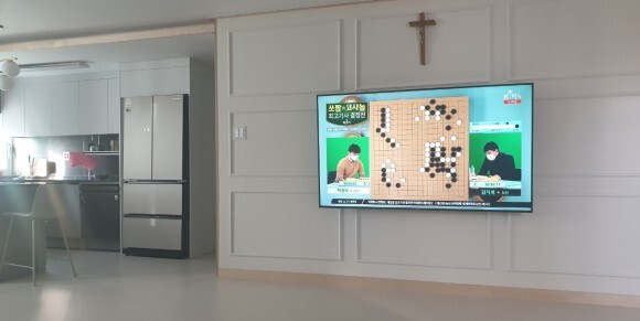 아직은 썰렁한 벽에 십자가랑 tv만 있으니 너무 홀리해 보여서