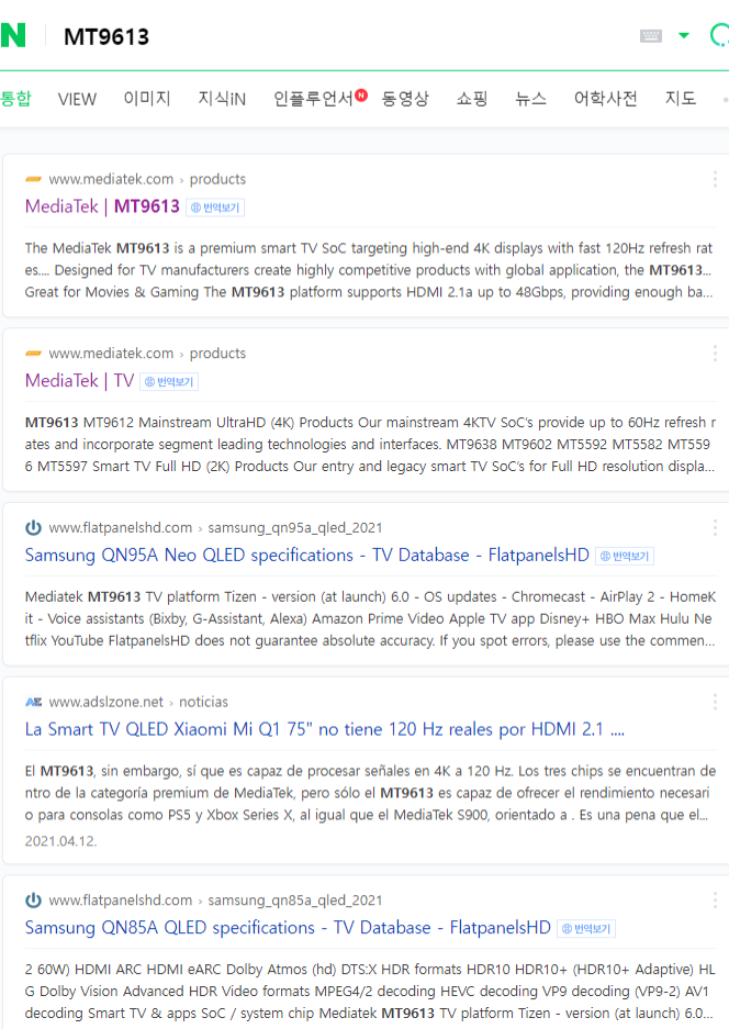 삼성이 있는거보니 칩선정과정에 있어 MT9613 옆에 있는 MT9612가 굉장히 좋게보이기 시작. 그렇기에, 최소한 MT9로 시작하는건 써줘야겠다 생각. 따라서 MT9미만의 칩이 포함된 TV는 다 거름. 또한 안드로이드 11이 나왔는데, 9는 너무 심하다 생각이 들어 안드로이드 9도 다 거름.