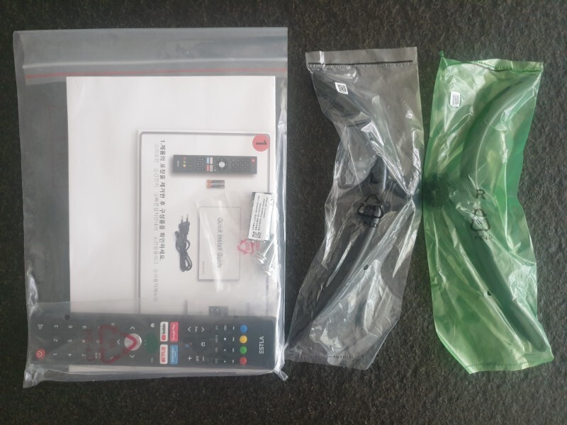 전원선은 TV에 연결되어 있어서 따로 동봉되어 있지는 않아요.