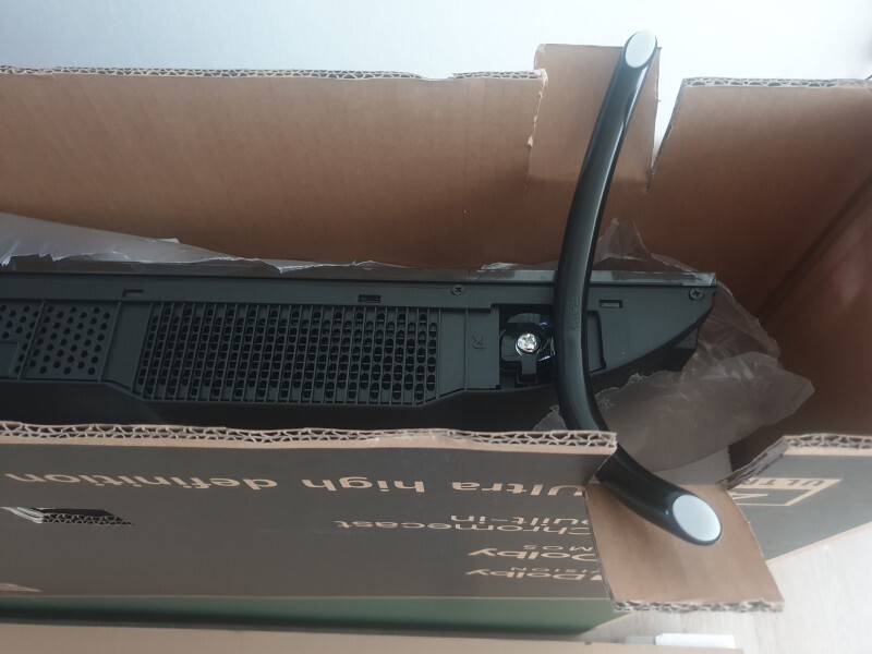 스탠드 좌우를 확인한 후 위치를 잡고 연결 시 스탠드가 걸리지 않도록 박스를 칼로 잘라주세요.