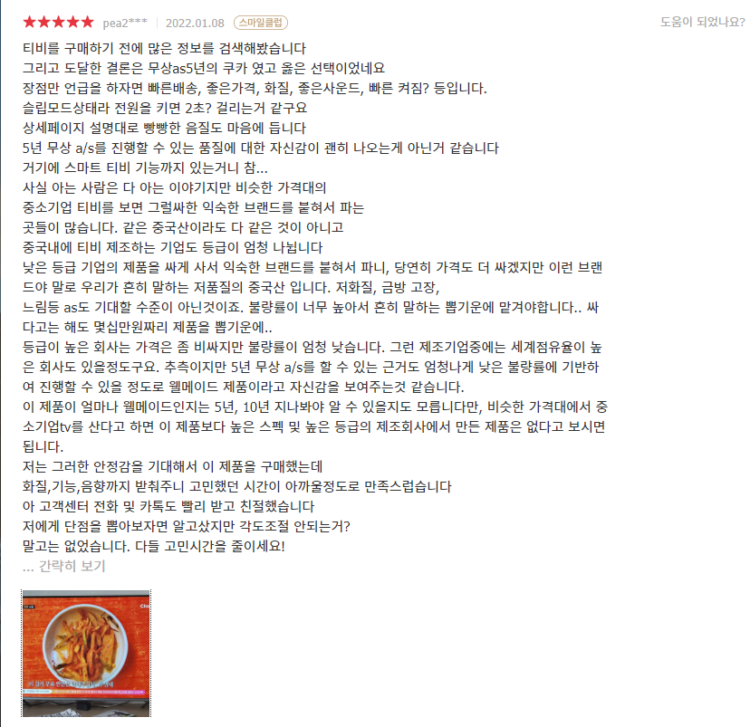 지금까지의 중소기업TV의 제품들은 참 잔고장도 많고 ..