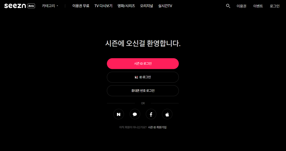 시즌을 시청하기 위해서는 로그인이 필요한데요. 우측 상단의 로그인을 눌러줍니다.